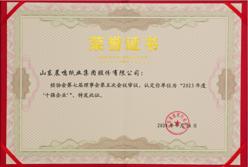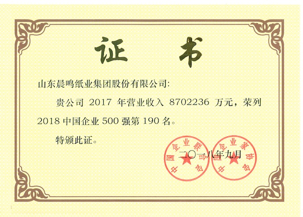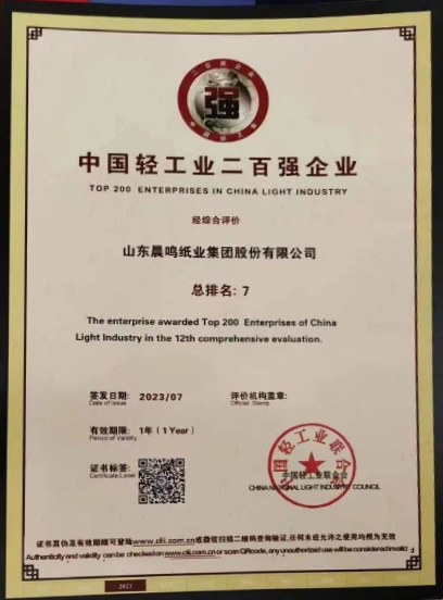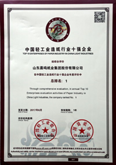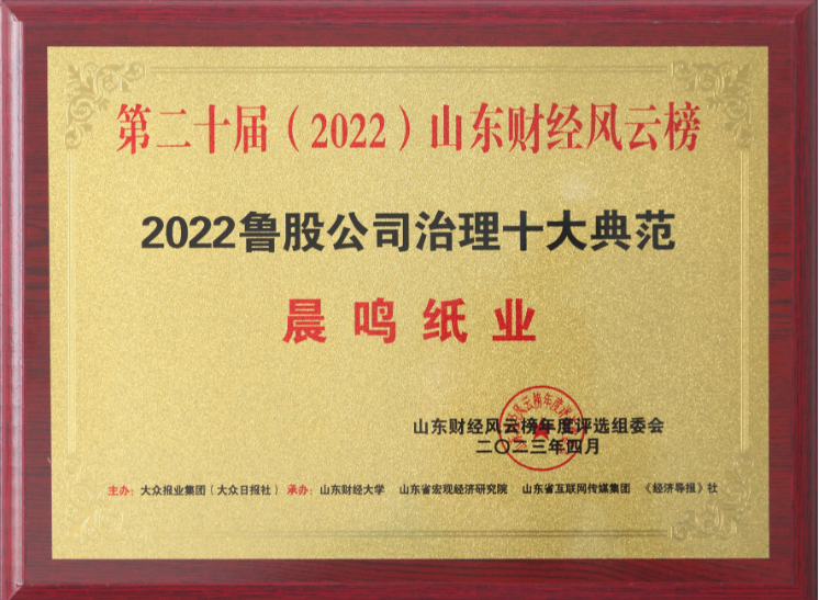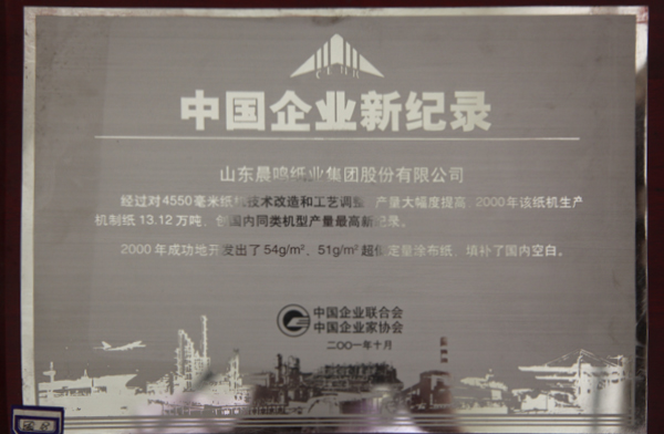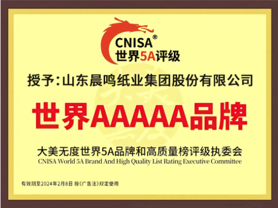 半個多世紀的探索和發(fā)展,讓晨鳴集團榮譽滿冠。晨鳴先后榮獲中國企業(yè)500強、中國制造業(yè)500強、輕工業(yè)全國十佳企業(yè)、中國出口名牌、全國五一勞動獎狀、中國企業(yè)管理杰出貢獻獎、全國生態(tài)文明建設十大新聞人物、全國精神文明建設先進單位、中國造紙工業(yè)環(huán)境友好企業(yè)、中國企業(yè)集團納稅五百強、中國工業(yè)行業(yè)排頭兵企業(yè)、全國造紙行業(yè)勞動關系和諧企業(yè)、山東省循環(huán)經(jīng)濟示范單位、低碳山東標桿企業(yè)等多項榮譽稱號。