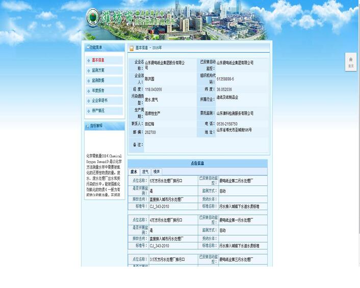 山東晨鳴紙業(yè)集團廢水、廢氣自測公示161013